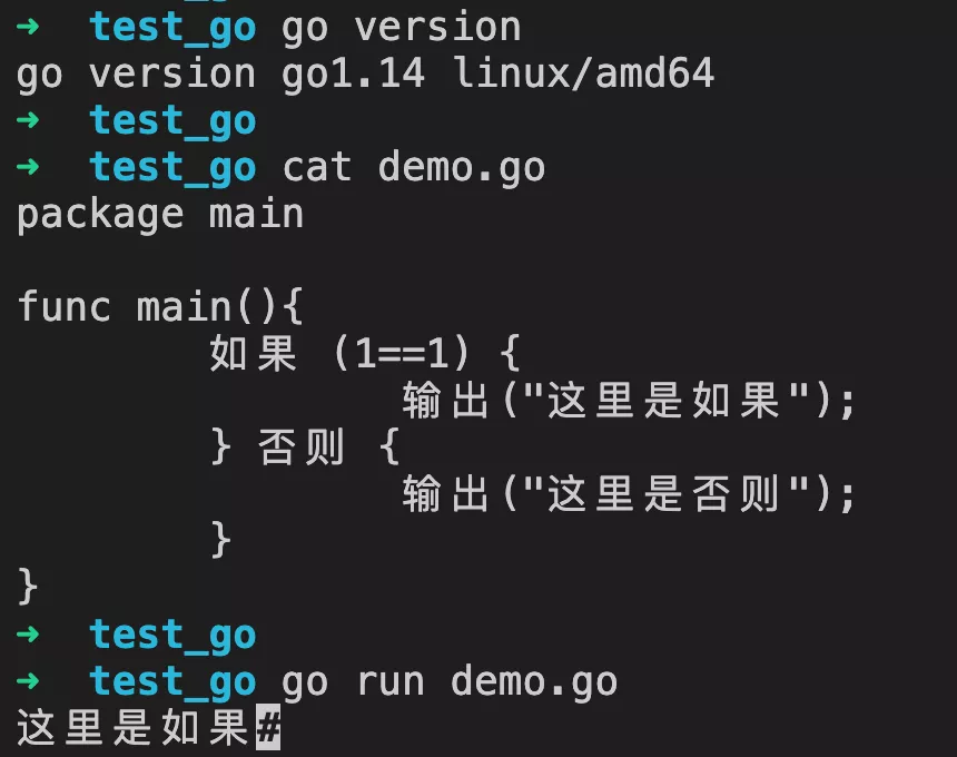 看到这里,你可能认为这段代码是使用上面的某种中文编程语言编写的。当然,相关中文编程语言也是可以实现该功能。但是,如果我告诉你,这是段PHP/Go代码的话,你会做何感想。