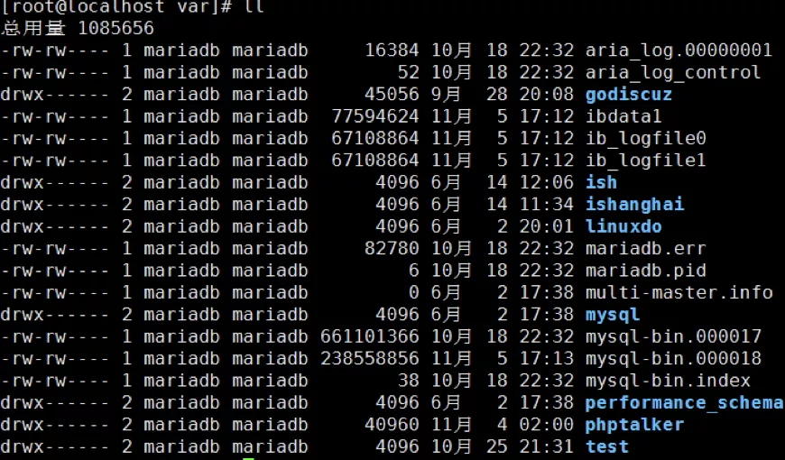 通过查看数据存储路径下面的目录结构来查看其构成。