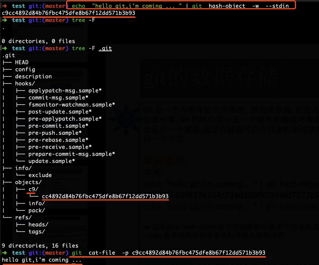 1 | echo "hello git,i'm coming ... " | git hash-object -w --stdin |