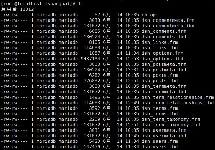 每一个数据库在数据存储上对应一个文件夹, 每一个表也有对应文件 数据以文件形式存在 (经过数据压缩以及其他处理,不能直接查看) ish_comments.frm 与 ish_comments.idb 组成一个ish_comments表(不同存储引擎,文件个数不同)