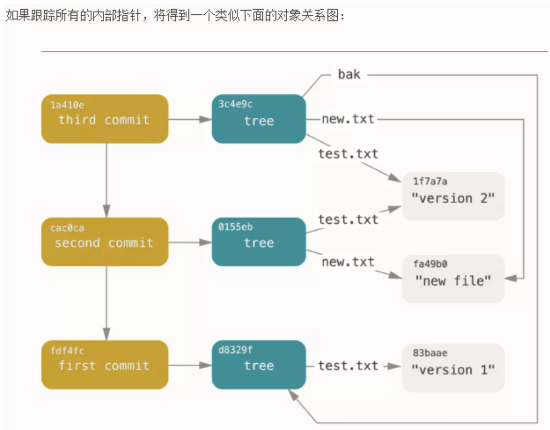 到这里,关于四个对象的关系已经基本说明完毕,具体的可以自己按照文章中实例进行操作之后,查看.git/object中各个文件的变化。