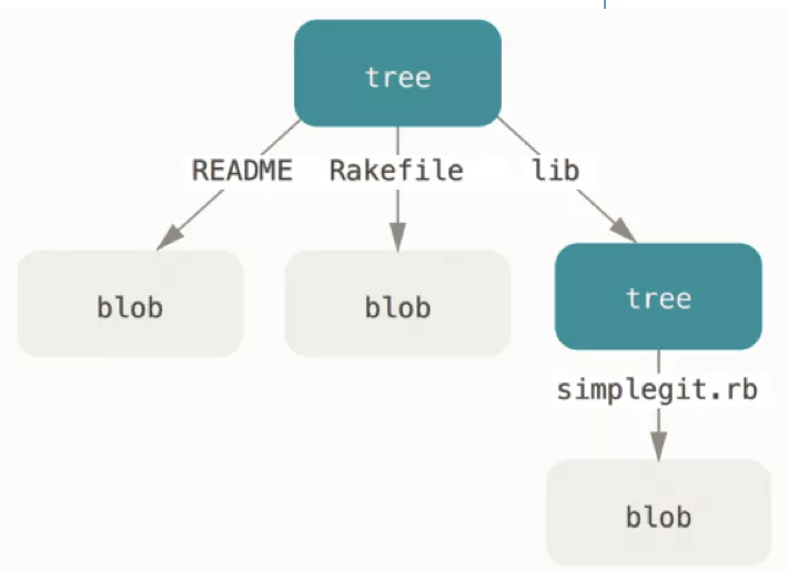 master^{tree} 语法表示 master 分支上最新的提交所指向的树对象。请注意,lib 子目录(所对应的那条树对象记录)并不是一个数据对象,而是一个指针,其指向的是另一个树对象: