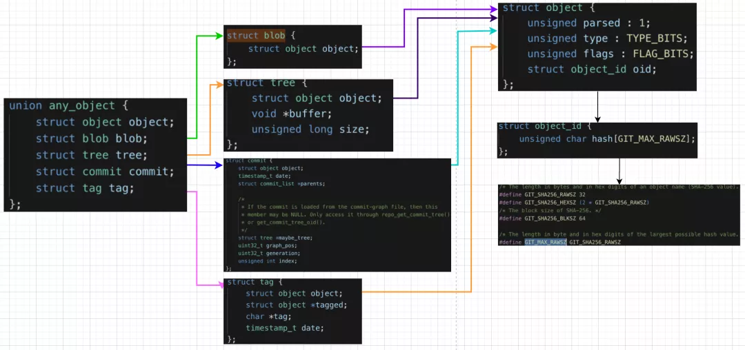 1. blob、tree、commit、tag中都包含一个object结构体