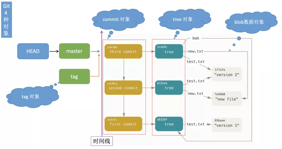 Blob对象、tree对象、commit对象、tag对象