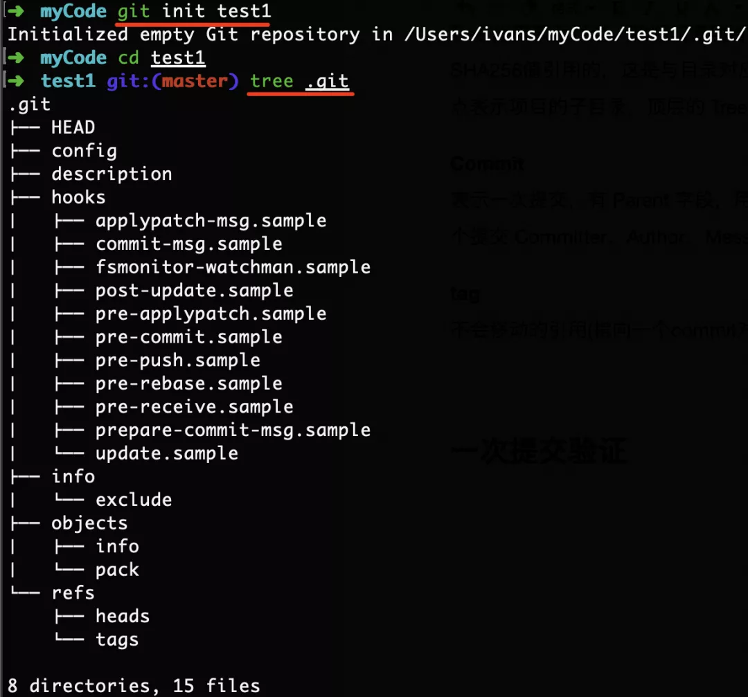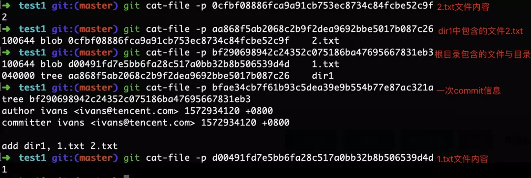 查看每个对象具体的内容使用:git cat-file -p “sha256 string”