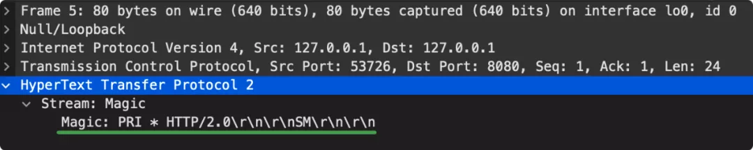 Magic帧的主要作用:对使用HTTP/2双方协议的确认, 是一个链接前言。作用是确定启用HTTP/2连接。