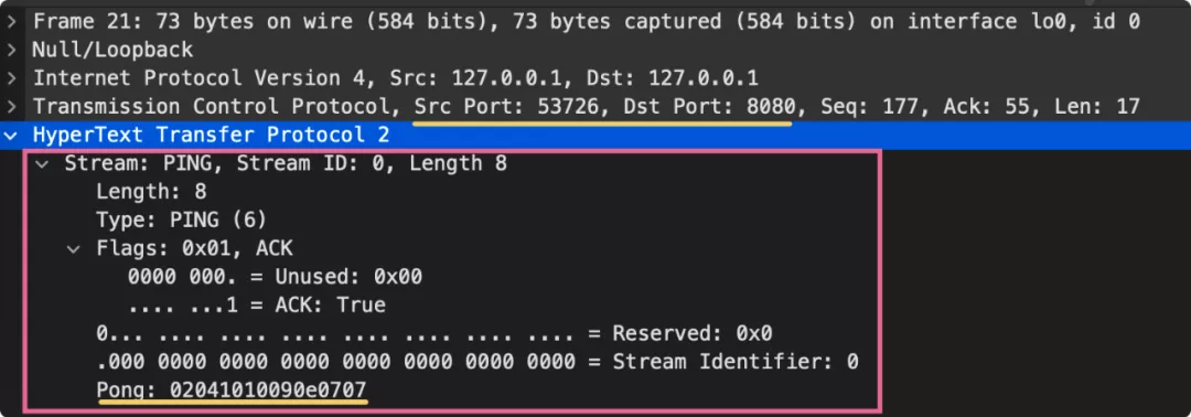注意:同一个Ping/Pong,有相同的标识字符串(图示中标识为:02041010090e0707)