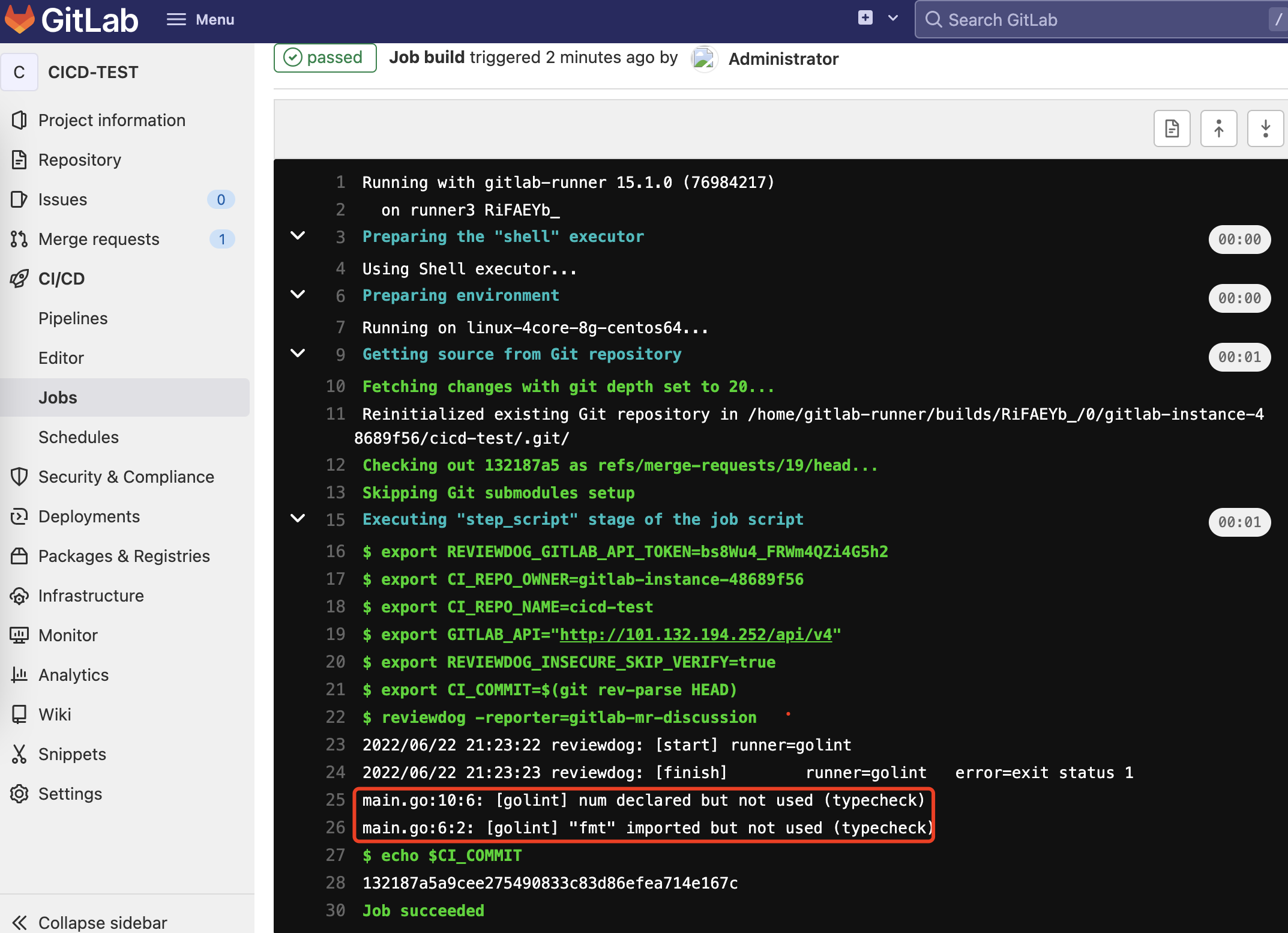 gitlab+reviewdog+golangci-lint实现提交MR时进行代码检测